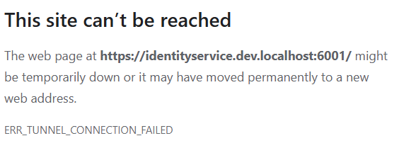 Fiddler, however, acts as a system proxy. When your browser sends a request through Fiddler, Fiddler asks the Windows OS to resolve the address. Unlike your browser, Windows has no idea where identityservice.dev.localhost is. You can verify this by trying to ping the address in your terminal: