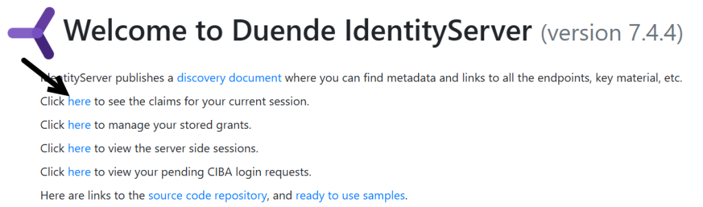 If we start our application and try to authenticate, perhaps by clicking the “Click here to see the claims for your current session” link (as shown below):